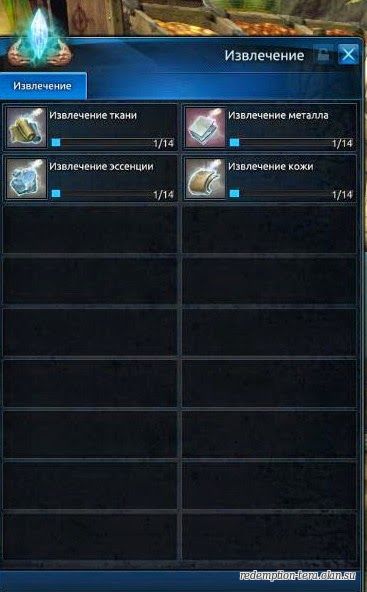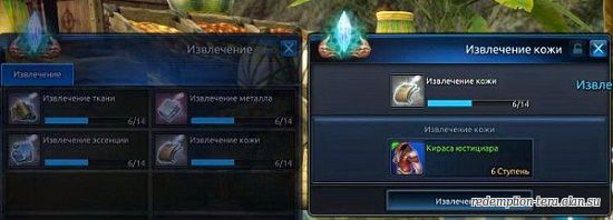 Для извлечения вам нужно купить специальные свитки (они покупаются у обычного торговца), свитки позволяют научится извлекать Металл, Ткань, Эссенцию и Кожу.